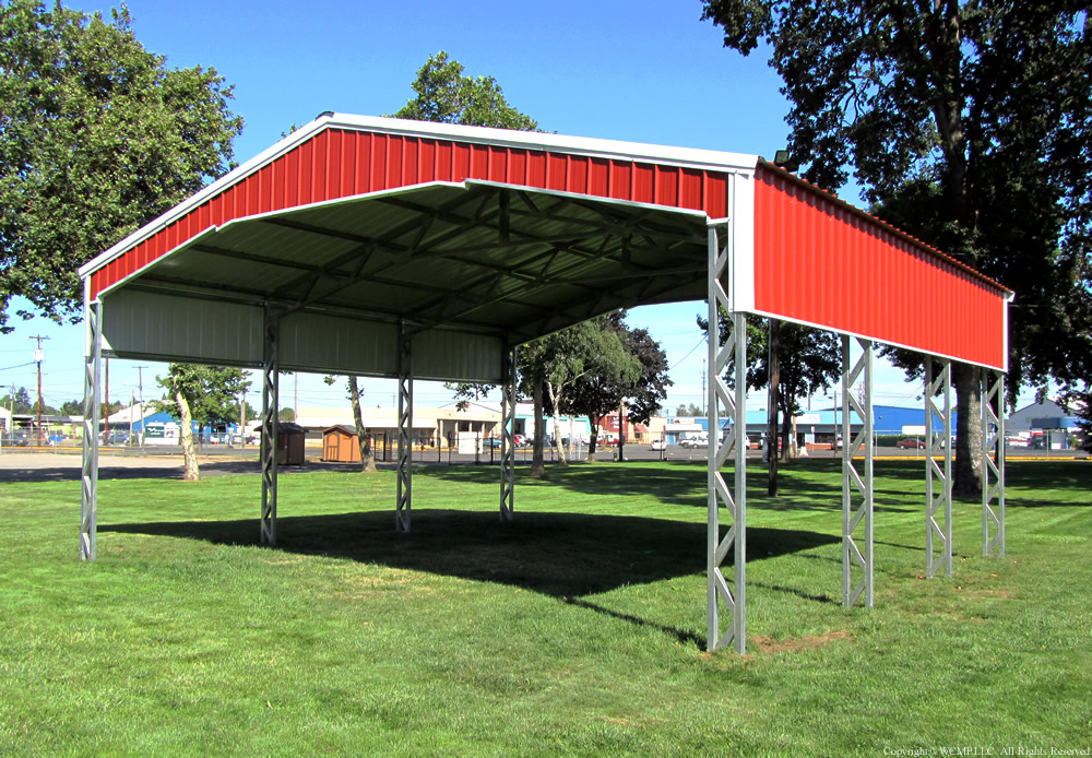 Free Span Building B Pre-engineered with 25 lbs/ft² and 110 mph 3-second gust (Upgrades Available) BACK | NEXT THUMBNAILS A-frame Vertical 40' width x 30' length x 12' height (2) Gable Ends (2) Vertical Sides Partially Closed